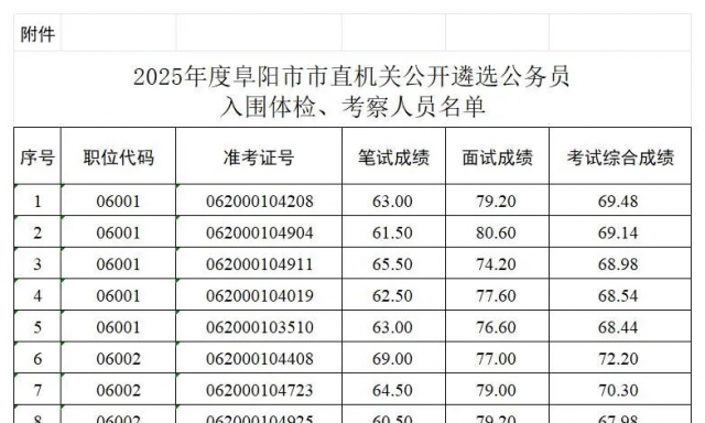 关于2025年度阜阳市市直机关公开遴选公务员体检、考察工作