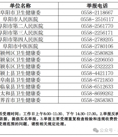 为做好全市医疗机构 整治重复检查检验和违规收费工作 5月15日 阜阳市卫生健康委公布