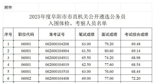 关于2025年度阜阳市市直机关公开遴选公务员体检、考察工作