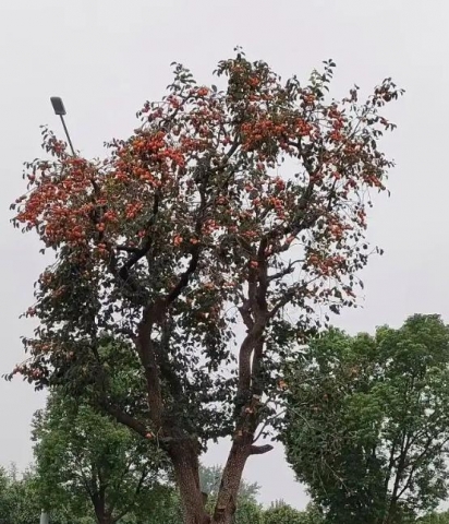 大皖新闻讯 近日,阜阳西湖大道中央绿化带里数百棵柿树上的柿子红了,正逐渐成熟,却