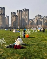 近日,颍东岳家湖西侧新出现了一片数万平方米的大草坪,吸引众多附近居民前来休闲打